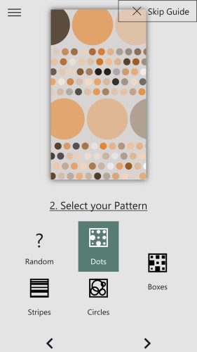 • New Pattern / Spread: "Squares", "Text", "Stripes" Spread: "Line"